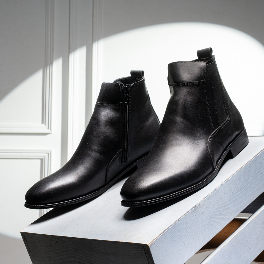 هاف بوت جلد طبيعي فاخر بيجمع بين الأناقة والراحة في تصميم واحد. مصنوع من جلد طبيعي متين يفضل جديد حتى بعد الاستخدام الطويل، بتصميم تشيلسي راقي يناسب كل الإستايلات سواء كاجوال أو كلاسيك.