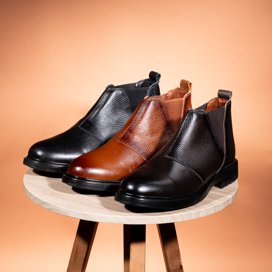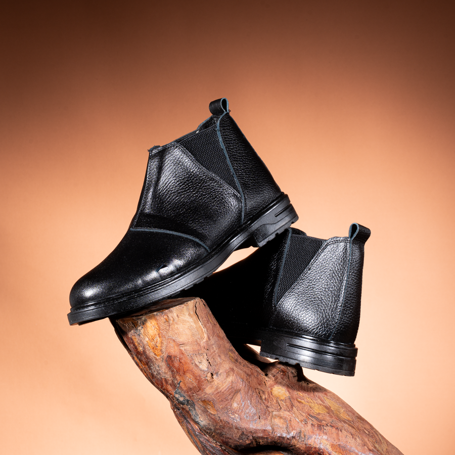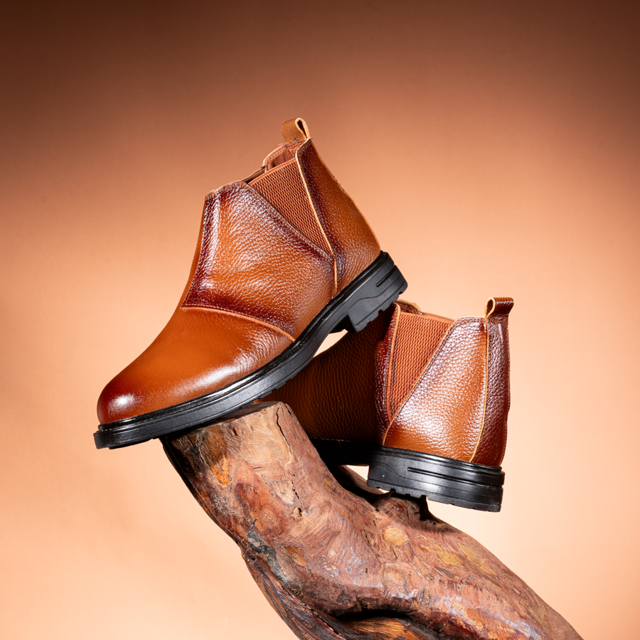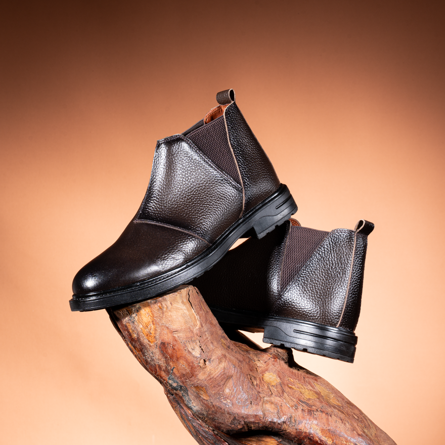 هاف بوت رجالي فاخر بخامة جلد مكسر طبيعي عالي الجودة، يجمع بين الفخامة والراحة والأداء العالي.